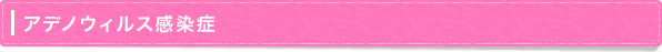 代表的な疾患として、咽頭結膜熱(プール熱)があり、主要症状は、高熱(38〜40℃の高熱)、扁桃炎(扁桃が赤く腫れて、白い膿が付着)、結膜炎(眼の充血、目やに)です。他にも胃腸炎(下痢、嘔吐)や膀胱炎を起こすこともあり、重症化すると、気管支炎や肺炎を合併することもあります。